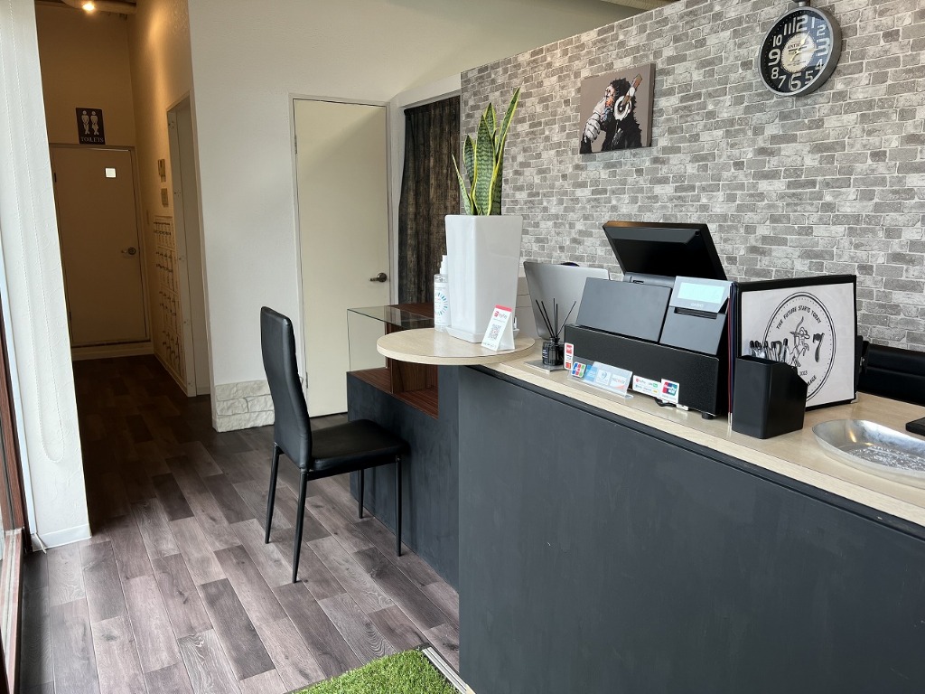 ちょっと変わったおしゃれな雰囲気を目指して、アメリカンガレージ風の内装にしております!
